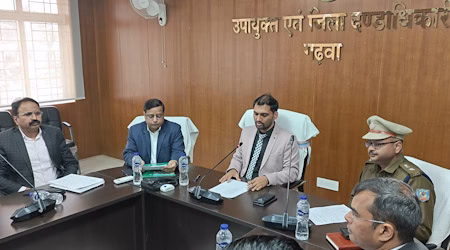 गढ़वा : जिला निर्वाचन पदाधिकारी (नगरपालिका) सह उपायुक्त दिनेश कुमार यादव एवं पुलिस अधीक्षक अमन कुमार की अध्यक्षता में दिनांक 28 जनवरी 2026 को समाहरणालय सभागार में नगर निकाय चुनाव को लेकर प्रेस वार्ता का आयोजन किया गया। इस दौरान उपायुक्त ने मीडिया प्रतिनिधियों का स्वागत करते हुए कहा कि राज्य निर्वाचन आयोग, झारखंड द्वारा नगरपालिका (आम) निर्वाचन-2026 की निर्वाचन प्रक्रिया से संबंधित जारी कार्यक्रम की विस्तृत जानकारी से सभी को अवगत कराया।