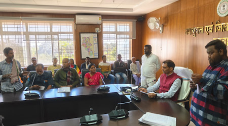गढ़वा : उपायुक्त गढ़वा दिनेश कुमार यादव ने आज समाहरणालय स्थित सभागार में जनसुनवाई का आयोजन किया। जन सुनवाई में आए फरियादियों की समस्याएं बारी-बारी से सुनी गईं एवं उसके निष्पादन हेतु उपायुक्त ने संबंधित पदाधिकारी को निर्देश दिया। आज के जनसुनवाई में राशन, पेंशन, भूमि विवाद, अवैध कब्जा, आवास, मुआवजा, योजनाओं का लाभ, अतिक्रमण, रोजगार सृजन, बकाया मजदूरी भुगतान समेत अन्य समस्याओं को लेकर उपस्थित हुए ग्रामीणों की बारी-बारी से उपायुक्त द्वारा समस्या सुनी गई एवं यथाशीघ्र उनके समस्याओं के निराकरण करने हेतु संबंधित पदाधिकारियों को निर्देशित किया गया।