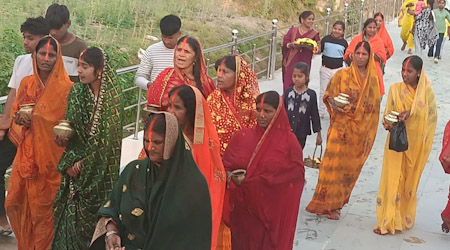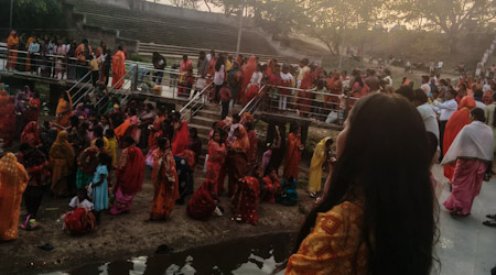 गढ़वा : लोक आस्था के महापर्व चैती छठ के दूसरे दिन संध्या अर्घ्य के अवसर पर प्रसिद्ध पर्यटन स्थल सतबहिनी झरना तीर्थ एवं प्रखंड मुख्यालय स्थित ऐतिहासिक पोखरा में बने टेंपल इन वाटर (सूर्य मंदिर) के समीप सैकड़ों व्रतियों ने कठिन तपस्या के साथ अस्ताचलगामी सूर्य को अर्घ्य अर्पित किया। व्रतियों ने मनोरम झरना एवं पवित्र जलाशयों में स्नान कर श्रद्धा और विश्वास के साथ भगवान भास्कर की उपासना की। सतबहिनी झरना तीर्थ में तीर्थ पुजारी पंडित आदित्य पाठक एवं पंडित प्रवीण पांडेय के नेतृत्व में वैदिक मंत्रोच्चार के बीच व्रतियों को सूर्याभिमुख खड़े होकर दूध एवं जल से अर्घ्य दिलाया गया। “एहि सूर्य सहस्रांशो तेजोराशि जगत्पते अनुकंप्य मां भक्त्यां गृहाणार्घ्य दिवाकर” मंत्र के उच्चारण से पूरा वातावरण भक्तिमय हो उठा। अर्घ्य के बाद व्रतियों ने अपने अपने थाला पर बैठकर भगवान सूर्य और छठी मैया को समर्पित पारंपरिक 5 – 5 गीत गाए।
