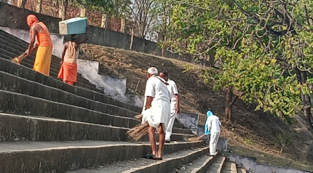 समिति के लोगों ने की घाटों की सफाई व भीड़ नियंत्रण किया