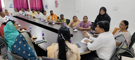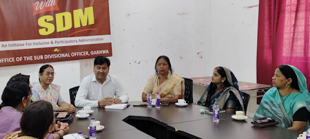 गढ़वा : पूर्व निर्धारित कार्यक्रम के अनुरूप गढ़वा सदर एसडीएम संजय कुमार ने अपने साप्ताहिक कार्यक्रम “कॉफी विद एसडीएम” में बुधवार को गढ़वा नगर परिषद एवं मझिआंव नगर पंचायत के नव-निर्वाचित जनप्रतिनिधियों के साथ परिचयात्मक संवाद किया। इस दौरान स्थानीय समस्याओं एवं विकास से जुड़े विभिन्न मुद्दों पर विस्तार से विमर्श किया गया। बैठक में मझिआंव नगर पंचायत की अध्यक्ष सुमित्रा देवी, उपाध्यक्ष सुमन विश्वकर्मा तथा गढ़वा नगर परिषद की उपाध्यक्ष अनीता प्रसाद सहित दोनों निकायों के तमाम वार्ड पार्षद उपस्थित रहे।