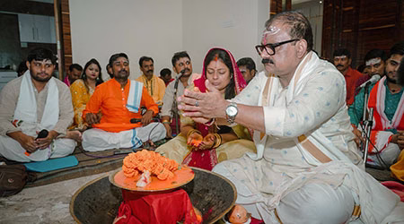झारखंड सरकार के पूर्व मंत्री झारखंड मुक्ति मोर्चा के केंद्रीय महासचिव मिथिलेश कुमार ठाकुर के आवास पर नाग पंचमी के मौके पर मंगलवार को भव्य रुद्राभिषेक और महाप्रसाद का आयोजन किया गया। पूर्व मंत्री श्री ठाकुर ने सपरिवार रुद्राभिषेक किया। उन्होंने गढ़वा व राज्य के सुख समृद्धि की कामना की। रुद्राभिषेक में पूर्व मंत्री के परिजनों सहित कई प्रशासनिक व पुलिस पदाधिकारी, समाजसेवी, शहर के गणमान्य लोग, झामुमो के सभी प्रमुख पदाधिकारी, कार्यकर्ता सहित काफी संख्या में लोग शामिल हुए। रुद्राभिषेक के बाद प्रसाद ग्रहण में भी गढ़वा के विभिन्न क्षेत्रों से काफी संख्या में लोग शामिल हुए। सभी ने मिलकर भगवान भोलेनाथ की पूजा-अर्चना की और महाप्रसाद ग्रहण किया।दो दिन पूर्व से ही पूर्व मंत्री के आवास पर रुद्राभिषेक की तैयारी काफी जोर-जोर से की जा रही थी। माहौल शिवभक्तिमय बना हुआ था। वाराणसी के विद्वान आचार्यों ने रुद्राभिषेक कराया। मंत्रोच्चार की गूंज से पूरा माहौल भक्ति में बना हुआ था। सुगंधित पुष्प व धूप बत्तियों से वातावरण सुगंधित हो रहा था। मंत्रोच्चार की गूंज, फूलों की सुगंध और श्रद्धालुओं की आस्था ने वातावरण को पूरी तरह भक्तिमय बना दिया था। पूर्व मंत्री श्री ठाकुर ने कहा कि भगवान भोलेनाथ गढ़वा और झारखंड राज्य सहित पूरे देश को खुशहाल एवं समृद्ध बनाएं। उन्होंने कहा कि श्रद्धा पूर्वक की गई पूजा अर्चना से भगवान प्रसन्न होते हैं। भगवान भोलेनाथ अपने सभी भक्तों की मनोकामना पूर्ण करते हैं। रुद्राभिषेक में पूर्व मंत्री की पत्नी चंचला ठाकुर, भाई अमरनाथ ठाकुर, विनय ठाकुर, रोजी ठाकुर, परिवार के सभी सदस्यों सहित काफी संख्या में लोग शामिल हुए।