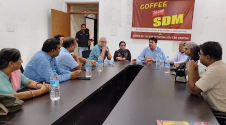 गढ़वा : सदर अनुमंडल पदाधिकारी संजय कुमार के नियमित साप्ताहिक संवाद कार्यक्रम कॉफ़ी विद एसडीएम में बुधवार को इंडियन मेडिकल एसोसिएशन के सदस्य चिकित्सकों ने भाग लिया। कार्यक्रम में चिकित्सकों ने न केवल अपनी समस्याएँ रखीं, बल्कि स्वास्थ्य व्यवस्था को सुदृढ़ बनाने हेतु कई सार्थक सुझाव भी दिए।