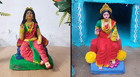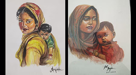 वह बिना किसी संसाधन के बनाती है सुंदर तस्वीर व प्रतिमाएं