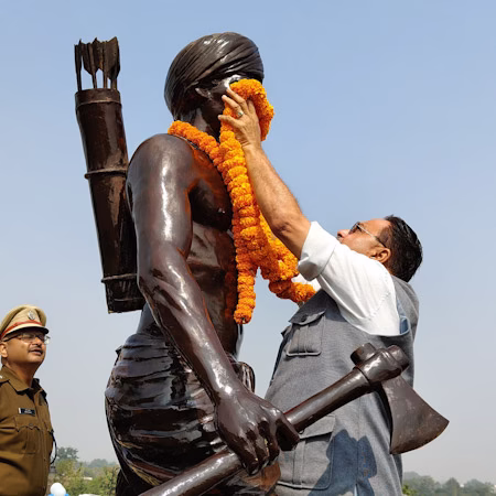 भगवान बिरसा मुंडा एवं वीर शहीद नीलांबर पीतांबर के आदम कद प्रतिमा पर किया गया माल्यार्पण
