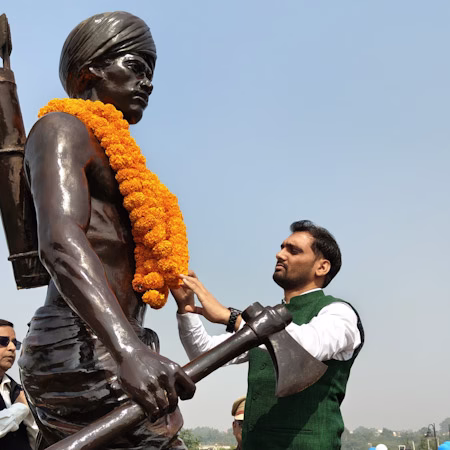 गढ़वा : जिला मुख्यालय में आज शनिवार को भगवान बिरसा मुंडा की जयंती और राज्य स्थापना दिवस मनाई गई। इस मौके पर गढ़वा जिला के प्रशासनिक अधिकारियों और जनप्रतिनिधियों ने नये समाहरणालय के सामने स्थित भगवान बिरसा मुंडा हेलीपैड पार्क में उनकी प्रतिमा पर माल्यार्पण कर उन्हें याद किया। उपायुक्त दिनेश यादव, पुलिस अधीक्षक अमन कुमार, उप विकास आयुक्त पशुपतिनाथ मिश्रा, माननीय विधायक भवनाथपुर विधानसभा क्षेत्र अनंत प्रताप देव, जिला परिषद अध्यक्ष शांति देवी, उपाध्यक्ष सत्यनारायण यादव, अनुमंडल पदाधिकारी संजय कुमार, जिला परिवहन पदाधिकारी धीरज प्रकाश, कार्यपालक पदाधिकारी नगर परिषद सुशील कुमार सहित अन्य पदाधिकारियों ने माल्यार्पण कर श्रद्धा सुमन अर्पित की। इसके उपरांत नीलांबर पीतांबर बहुद्देशीय सांस्कृतिक नगर भवन गढ़वा में स्थापित वीर शहीद नीलांबर पीतांबर के प्रतिमा पर भी माल्यार्पण कर श्रद्धा सुमन अर्पित किए गए।