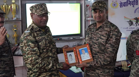 गढ़वा : अमेठी (उत्तर प्रदेश) के मूल निवासी और इस वाहिनी के निरीक्षक (जीडी) कल्पनाथ तिवारी 40 वर्षों की लंबी, अनुकरणीय एवं गौरवशाली सेवा के पश्चात 30 नवंबर 2025 को अधिवर्षिता सेवानिवृत्ति पर जा रहे हैं। उनकी सेवानिवृत्ति से पहले शुक्रवार, 29 नवंबर 2025 को वाहिनी मुख्यालय में उनके सम्मान में भव्य विदाई समारोह का आयोजन किया गया। इस अवसर पर द्वितीय कमान अधिकारी कुलदीप कुमार सहित अन्य वरिष्ठ अधिकारी एवं बड़ी संख्या में जवान उपस्थित थे।