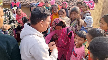 कार्यक्रम के दौरान स्वेटर, जैकेट, कंबल, चप्पल सहित अन्य आवश्यक ऊनी वस्त्र वितरित किए गए। साथ ही बच्चों के बीच पारंपरिक खाद्य सामग्री भी प्रदान की गई, जिससे त्योहार का उत्साह और उल्लास और बढ़ गया। ठंड के मौसम में मिली इस सहायता से इन परिवारों के चेहरों पर संतोष और खुशी साफ दिखाई दी।