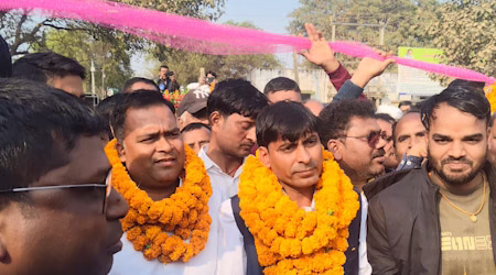 गढ़वा : ठीक एक साल बाद पिंकू पांडेय ने कांडी प्रखंड प्रमुख की कुर्सी पर फिर से कब्जा जमा लिया। अविश्वास प्रस्ताव पारित होने पर 18 जनवरी 2025 को उन्हें अपना पद छोड़ना पड़ा था। ठीक एक साल बाद 19 जनवरी 2026 को उन्होंने फिर से प्रमुख की कुर्सी हासिल कर ली। विजेता घोषित होने व शपथ ग्रहण के बाद बड़ी संख्या में मौजूद समर्थकों ने उन्हें व युवा समाजसेवी विकास दुबे का फूल मालाओं से लादकर जयघोष के साथ आतिशबाजी करते हुए जमकर स्वागत किया। इसके बाद रंगारंग जुलूस निकाला गया। गढ़वा सदर एसडीएम सह निर्वाची पदाधिकारी संजय कुमार द्वारा सोमवार को कांडी प्रखंड सभागार में सहायक निर्वाची पदाधिकारी राकेश सहाय की देख रेख में कांडी प्रखंड प्रमुख का चुनाव निर्धारित समयानुसार शांतिपूर्ण तरीके संपन्न कराया गया।
